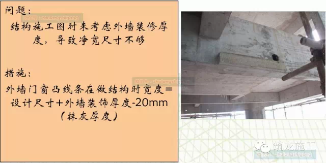 结构施工图尺寸一般没考虑装饰的厚度,在结构施工时,如果考虑装饰装修的一些做法,将有效预防尺寸偏差。