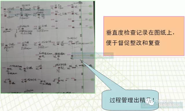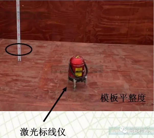 采用激光标线仪对模板平整度、砼平整度进行过程控制,全数复核,及时整改,并做好记录。