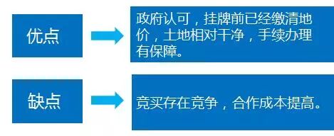 (1)优点:一手地,土地没有债权债务,交地标准清楚,风险相对较小。