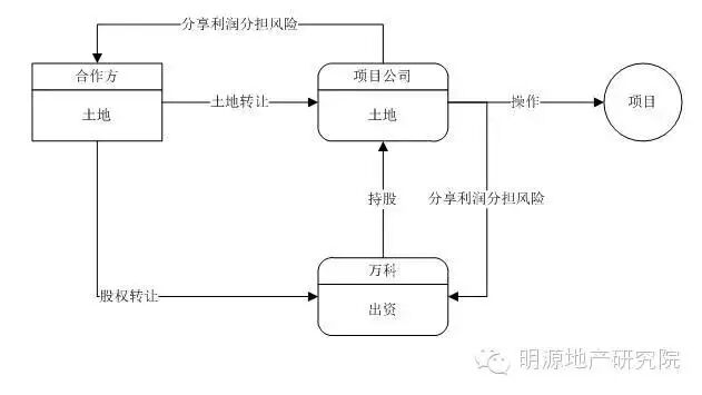 该模式是开发商与土地方成立项目公司,土地方将土地使用权变更到项目公司名下后,由项目公司具体开发经营项目的一种模式,有时被视同为土地转让,需要发生土地转让的交易税费。这是万科较常使用的一种模式.在项目公司模式中,万科要求: