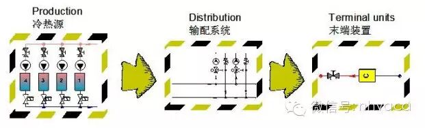 主机产生冷热量,末端进行冷热量的释放,其中冷热量的输送需要冷热媒作为载体。冷热媒可以是蒸汽、水、乙二醇溶液等,在HVAC系统主要采用水。