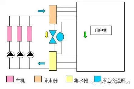 (1) 主机侧(一次泵系统)通过压差旁通管路,为定流量。输配系统及用户侧(二次泵系统)可以采用定流量系统和变流量系统两种方式。我们通常讲的定流量或变流量就是指用户侧。
