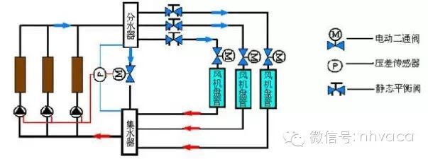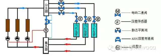 (4)用户侧如果采用定流量系统,即为不安装电动二通阀,采取变风量(改变风机风速大小)来实现调节室内温度;或安装电动三通阀实现定流量。定流量系统,业主初始投资少,但不节能,系统始终按最大流量运行,运行费用高。
