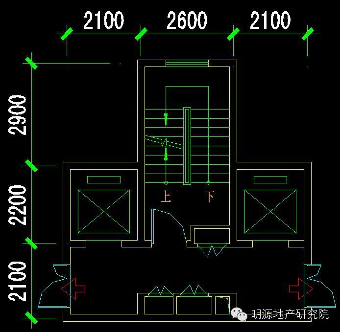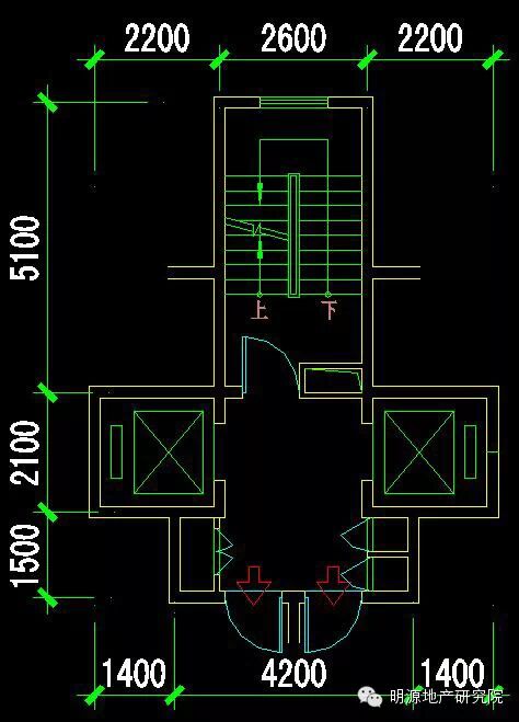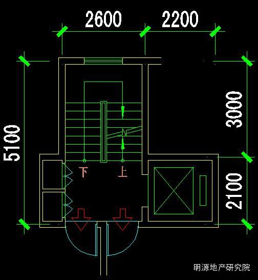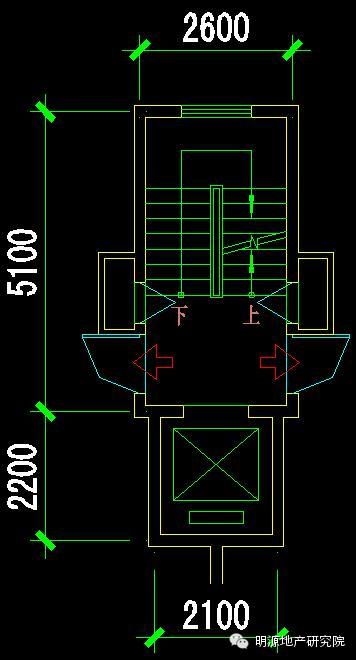 楼梯尺寸:开间2600mm,进深5100mm(开敞楼梯间一部);