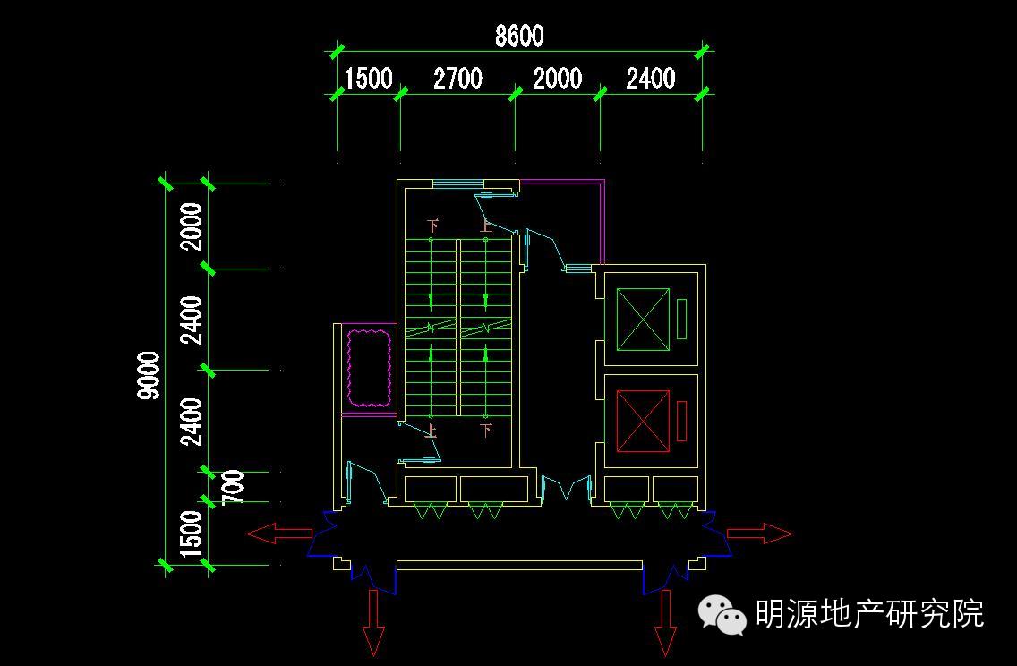 采光和通风性:楼梯间直接采光,比较明亮;候梯空间间接采光,效果相对较差;