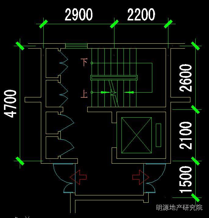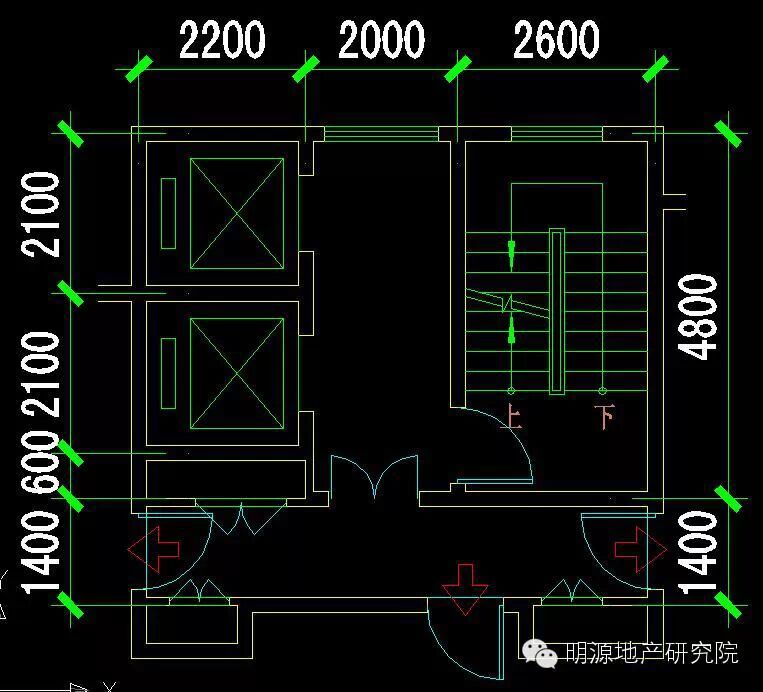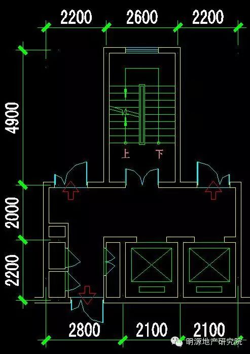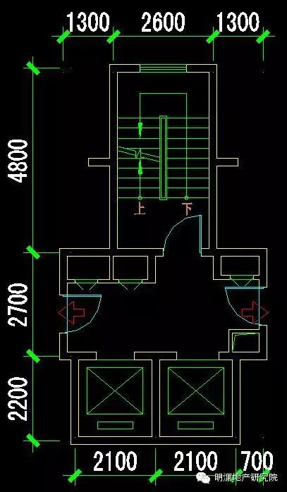 楼梯尺寸:开间2600mm、进深4800mm (封闭楼梯间一部)
