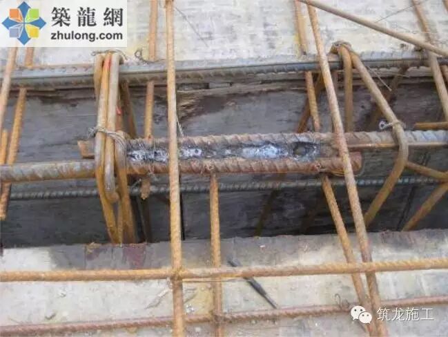 焊缝长度不够10D,主筋被咬伤,焊缝宽度不足0.8 d。接头处未打偏角