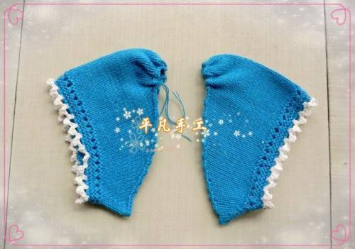3、袖:用13号针起72针织底部花样,之后换12号针均匀加针至82针,在2-2-5加针。平收8针,两边按2-2-5,2-3-8收针,16针平收,再用手工缝出6个皱褶。