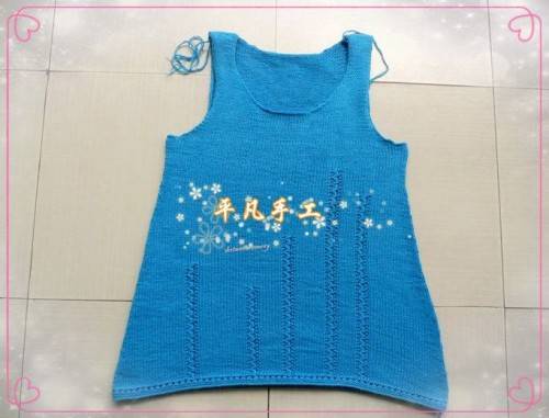 1、用13号针起228针,圈织底部花样,换12号针织花样A(比较懒,花样只织了前片,后片全平针),按6-4-1,7-4-10,6-4-5收针,收针至164针,再编织20行平针。