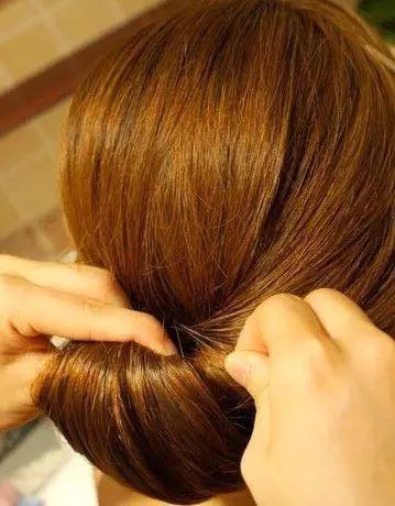 左右两边各抓起一束头发,用扭转的方式将头发扭紧