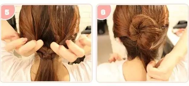 将辫子右边的往左边绕,左边的往右边绕,绕紧之后用小黑夹收好