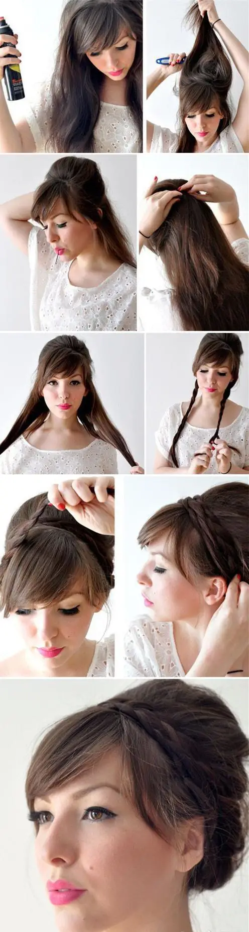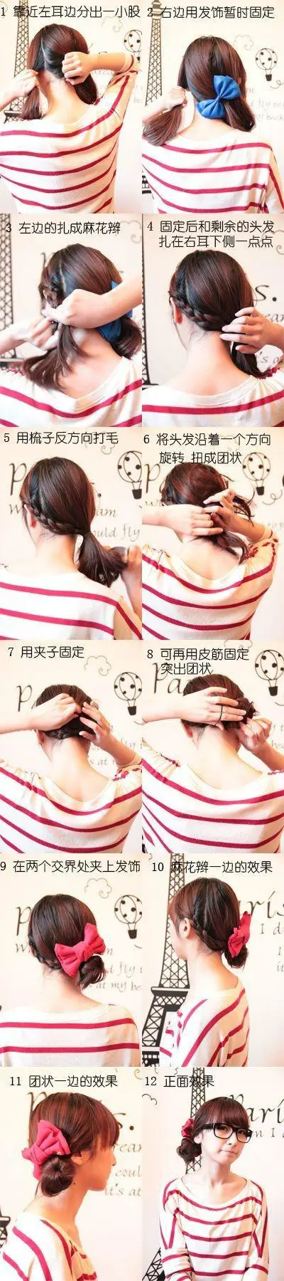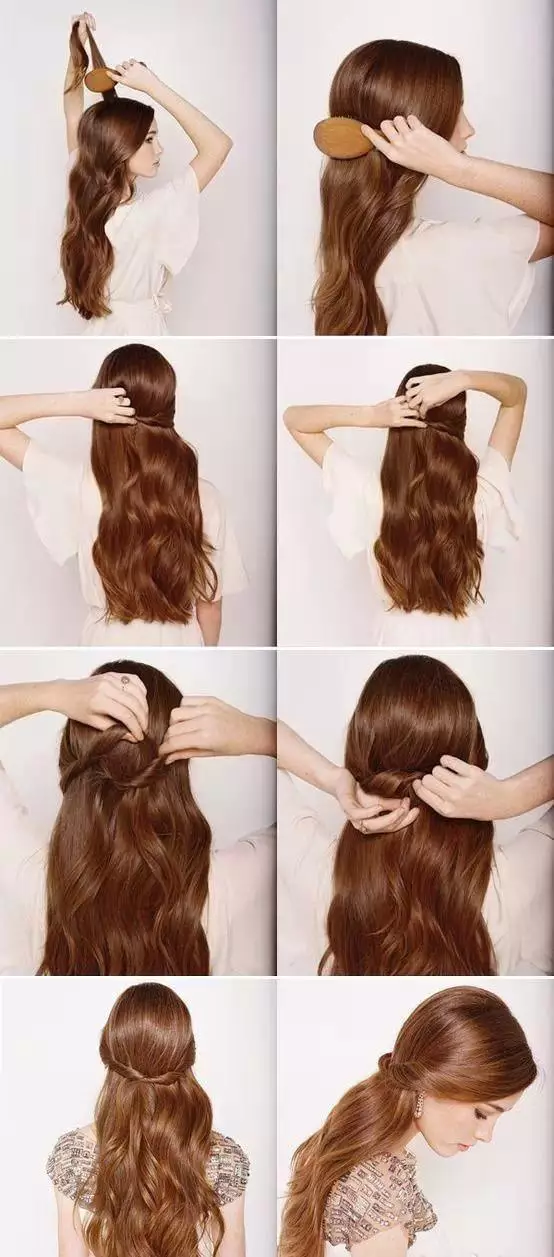 这个发型再简单不过了,但是却非常实用。居家旅行、结婚聚会万用啊~整个造型所花费时间不过5分钟,快快抛弃你那沉闷的造型,来点新鲜感吧。