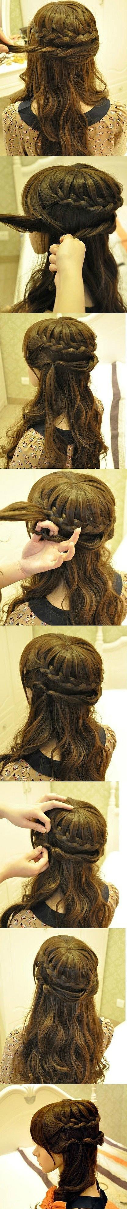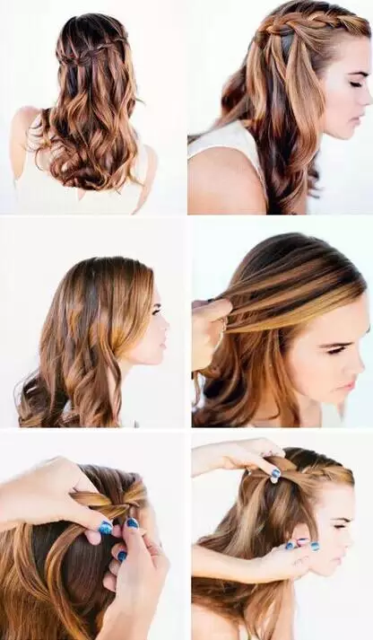 这款编发适合中长卷发的MM,会显得非常有精神,且气质也提升上去了。不经意的做了个非常有心机的发型,适合跟男友约会时使用,柔弱的软妹感有没有。
