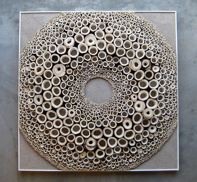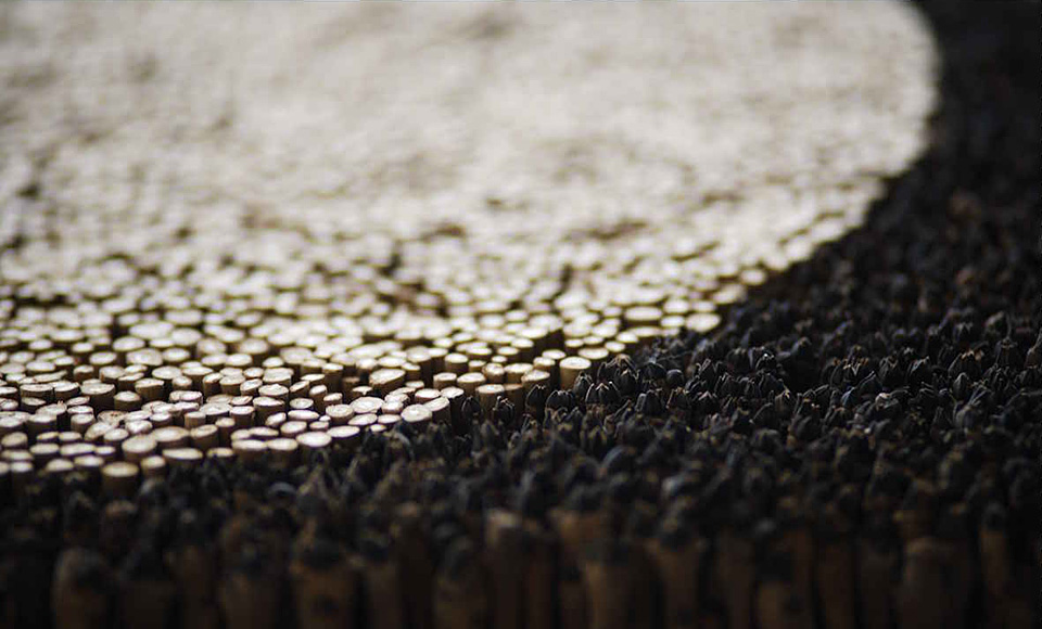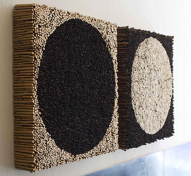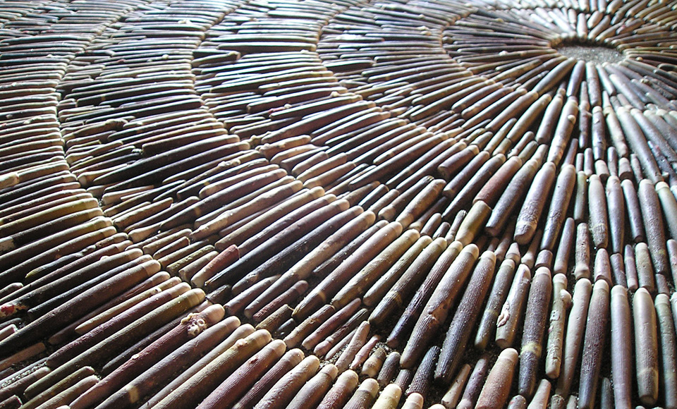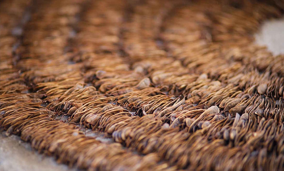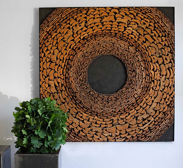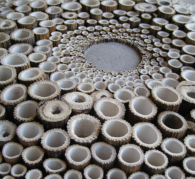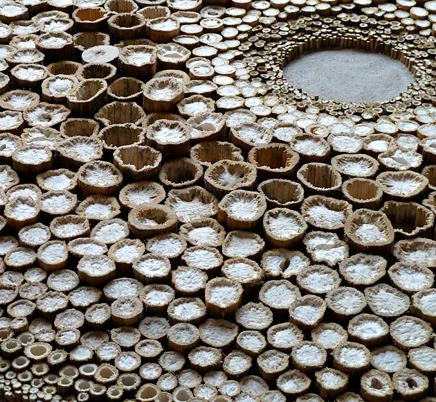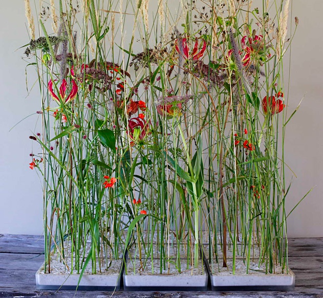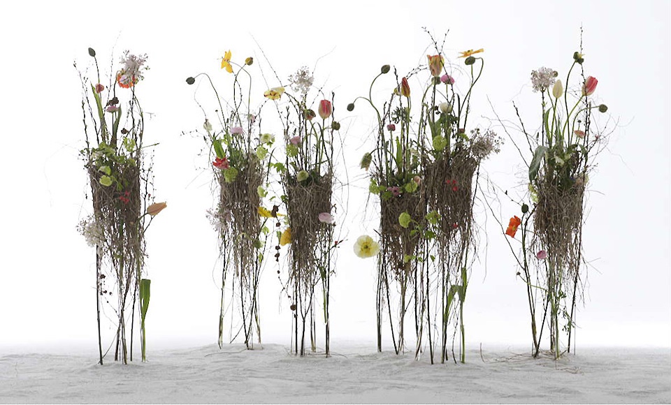 来自荷兰的艺术大师Rob Plattel 以“自然节奏”为主题,采用花、枝、种子、叶、风化的浮木 、竹等,具有明显的形态和性质的天然材料,其材料是在世界各地随处可寻。“拼凑”了一个属于他自己的独特风格“Natural Art”