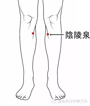 阴陵泉穴:在小腿内侧,当胫骨内侧髁后下方凹陷处,左右各一。