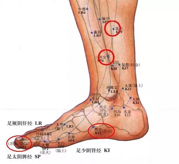 脾经的重要穴位。和消化密切相关的两条经脉,足阳明胃经和足太阴脾经分别循行和相交于足大趾内侧端隐白穴