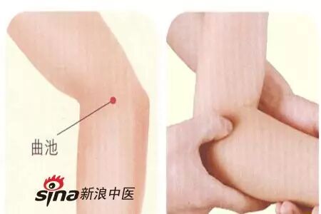取穴:屈肘时肘横纹外侧端。手法:用艾条灸每天1次,每次10分钟。
