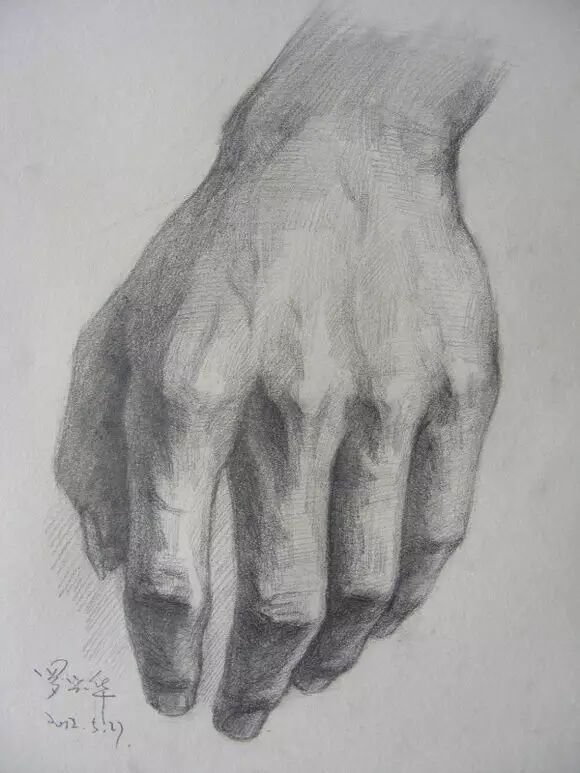 手的表现 能够充分反映人物的动作特点和内在精神活动,也是心灵的第二窗口。但由于手指的外形相似,变化又很多,以及年龄的区别,手的表现也是格外不容易的。俗话说,画马难画走,画人难画手。