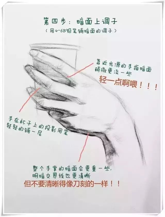 4/6 加强对手部结构的理解,手部的刻画在素描半身像当中,是继头部之外的又一重点表现对象。