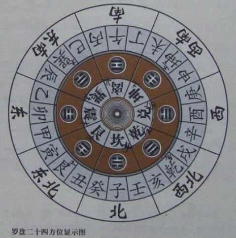 罗盘上由易经八卦去代表八个方位,每个方位再包含三个方位,合共二十四个方位。