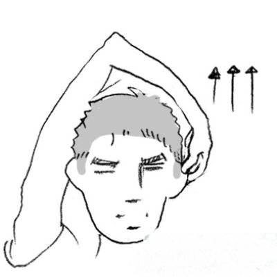 左手过头顶向上牵拉右侧耳朵数十次,然后右手牵拉左耳数十次。这一锻炼还可促进颌下腺、舌下腺的分泌,减轻喉咙疼痛,治慢性咽炎。