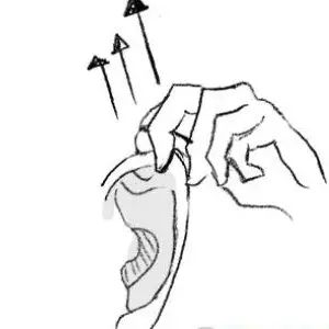 用双手拇、食指夹捏耳廓尖端,向上提揪、揉、捏、摩擦15~20次,使局部发热发红。此法有镇静、止痛、清脑明目、退热、抗过敏、养肾等功效,可防治高血压、失眠、咽喉炎和皮肤病。