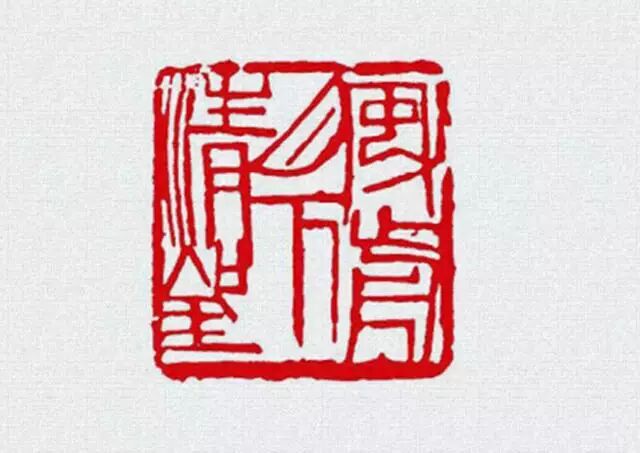 “借山门客”(图5)一印,是白石老人的典型风格。齐白石的白文印,常常由于章法上强烈的疏密对比,排列上的恢宏跌宕,运用的干脆利落,别具一种气势逼人、神采飞动的风貌。有人说他刻印只在印面上涂一点墨,不起稿就可直接奏刀,实际上,有些字他不但要查核工具书,写上印面后还要用小镜子反照审视,需要修改的必不厌其烦,直到一印定局,才霍然奏刀。这是艺术家对待艺术认真的态度。"借山门客"一印,"山、门"二字笔画较少,大块留红,与"借、客"二字相对比呼应。刀法上单刀中锋,忽粗忽细,有些笔画有明显的补刀痕迹以增强厚重感。