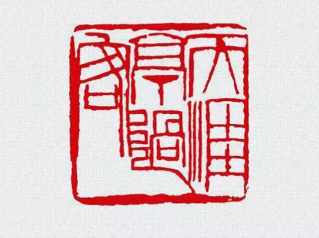“悔乌堂”(图7)这方著名的长方形斋馆印,在线条组合变化上与"人长寿"一印有异曲同工之妙,如果读者从"人长寿"一印的欣赏中已经得到了不少启示,则可用同样的方法去研究"悔乌堂"一印中线条的变化。"堂"字口下一横,故意折其左端,人为地造成空地,为的是与"悔"字右下空处相呼应。此印采用头尾呼应的办法,"乌"线条密集,且以横线条为主,恰与头尾两个以直线条为主的字相映成趣,耐人寻味。