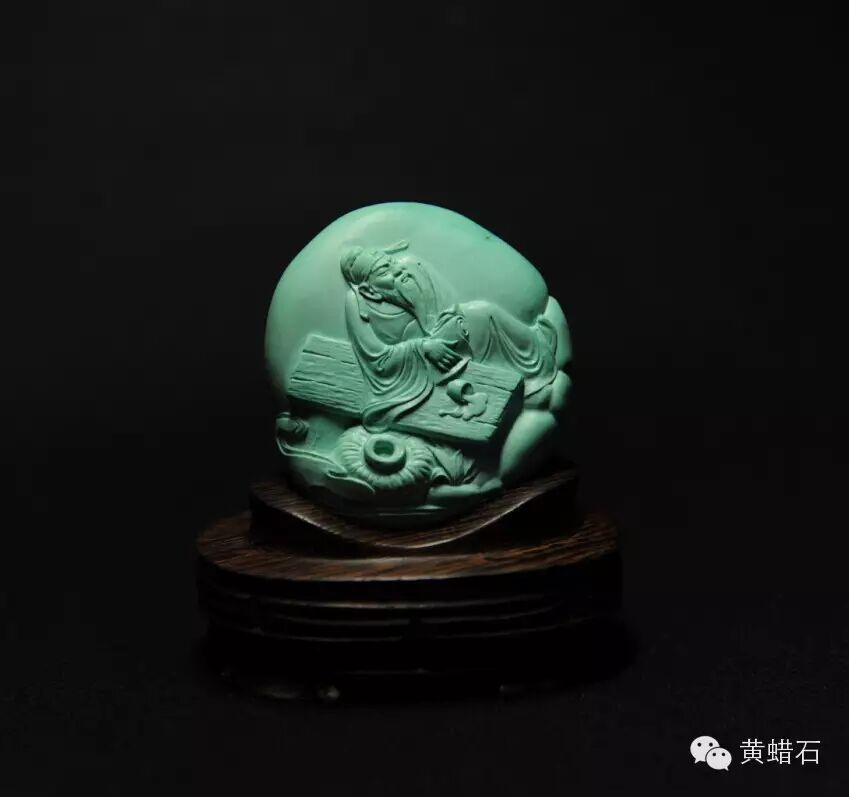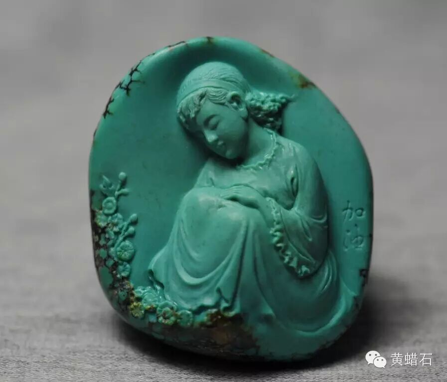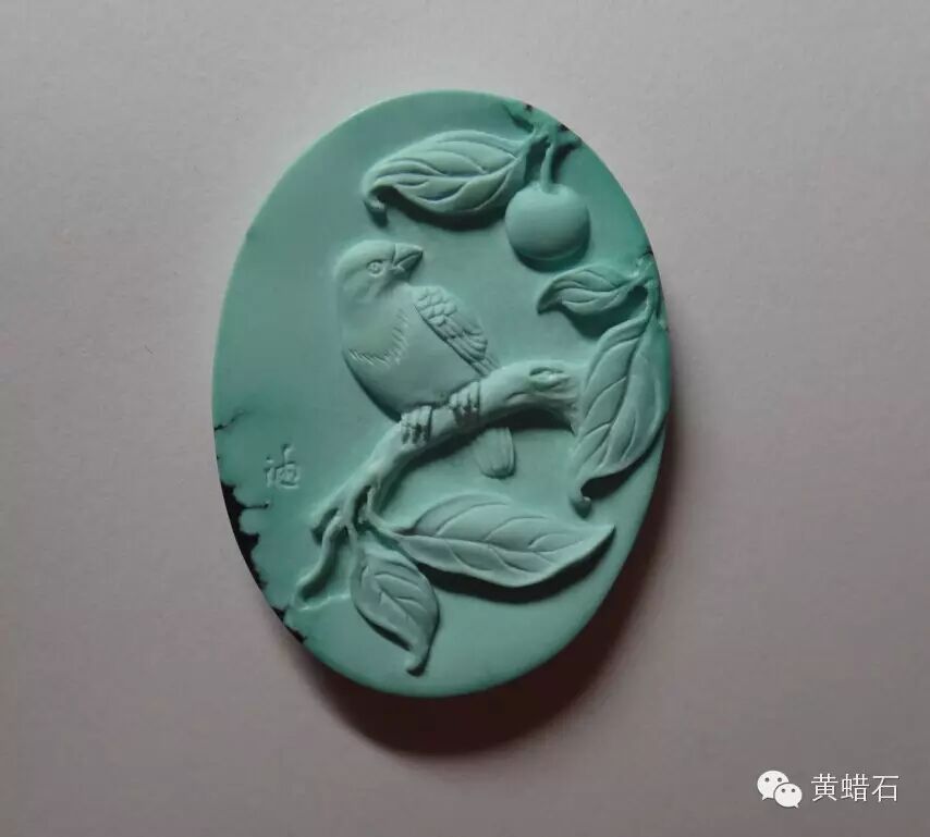 叶加油先生的作品无论创作何种题材,一块石头拿来,总是先储于心,再形于手。充分利用国画要求的“意存笔先,画尽意在”的意境,然后通过多年磨砺出来洗练的刀工技巧与艺术修养恰到好处地融合在一起,题材新颖独特而往往出其不意,刀工干净利落且线条优雅流畅,一块块绿松石在他手里辗转腾挪间就如同被施了魔法一般拥有了生命。他的作品从内到外散发出一种大师作品才有的从容与淡定,文人气十足,给人以一种恬静、淡泊、与世无争的感觉,气韵生动。光生动两字就不是谁人都可以做到的,更何况要做到气韵皆生动。