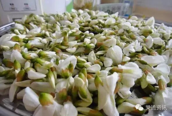 1、洗净的槐花在通风处控干水份(一天左右)。