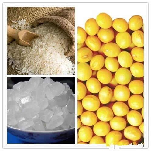 用料:黄豆,大米与冰糖,水