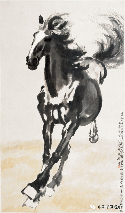 2.徐悲鸿所画的马,桀骜不凡,自由奔放,观之令人惊心动魄,在写实之中充满了浪漫主义的风格。画家不仅把骏马作为自己绘画风格的象征,更是一种精神的追求,是对自由和激情的赞美。