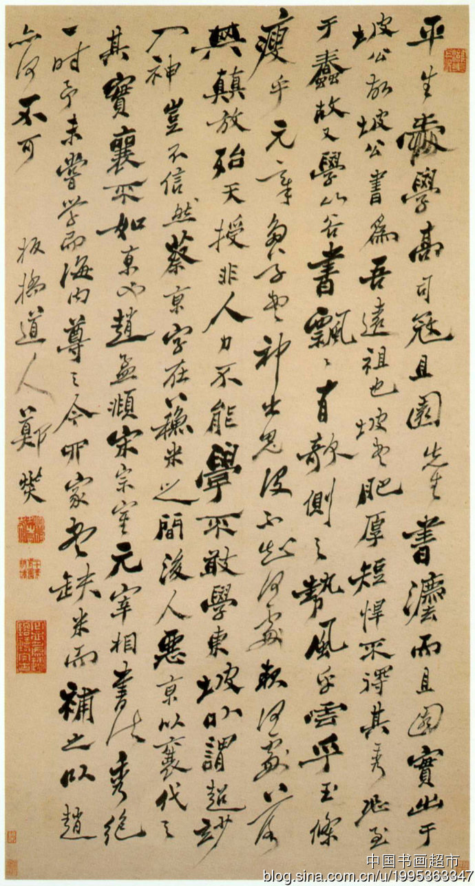 3.此帖运笔如刷,笔力雄健,结态造势宽展肥美,当为米芾中年书法之精品。此帖流传有绪,历代著录于《墨缘汇观》、《石渠宝笈续编》,刻入《三希堂法帖》。藏于北京故宫博物院。释文:淡墨秋山画远天,暮霞还照紫添烟。故人好在重携手,不到平山谩五年。