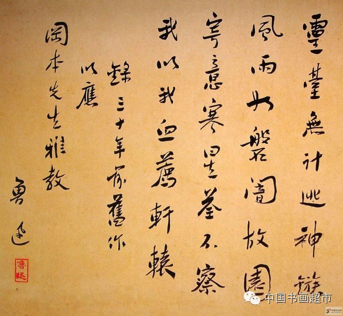 42.郭沫若此作笔力爽劲洒脱,运转变通,情绪飘逸激荡,韵味十足,充分体现了郭沫若书法“回锋转向,逆入平出”的特征。