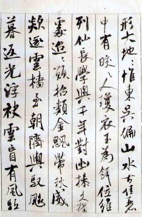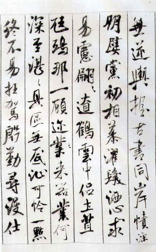 略知书法的人都知道是中锋用笔,但对中锋用笔的解释则莫衷一是,各执已见:有人说正锋即中锋,又有人说:常使笔针在画中,还有人干脆给你打个比方:如锥画沙、如屈铁、如折钗鼓、如屋漏痕。目前各类书法教材或普及性书法书籍中对于用笔技术的阐述则大多从藏露锋,正侧锋、提按、转折等方面分解地说明它,对于用笔整体的指导思想和总体的运笔规律论述较少。