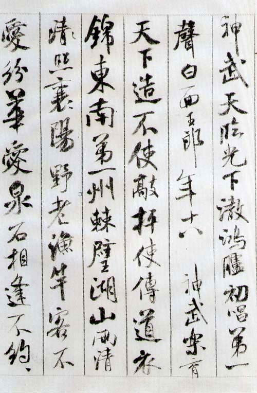 历史上米芾曾自称自己是刷字,实际上就是简化了八面出锋,他也曾自谓:“善书者只得一笔,我独有四面”。这也是对八面出锋理论的印证,同时,我们找出米芾的苕溪诗中的字,以八面出锋简化理论完全能解释其字迹粗细变化的形成原因。