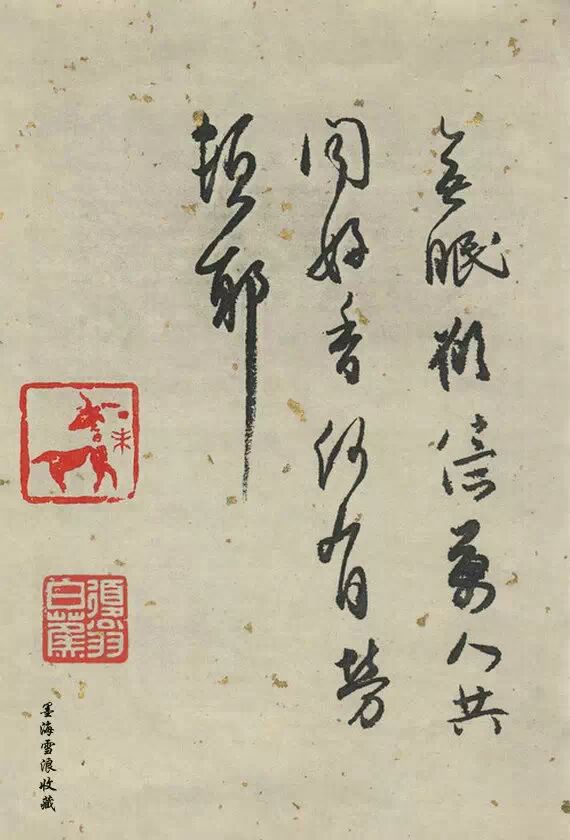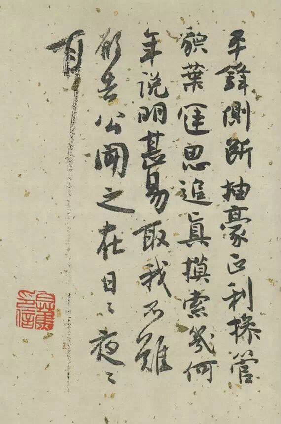 白蕉在本卷的书写中,或行取楷意,举止投足顾盼有致;或行融草法,虽行色匆匆而不失法度,于此可见,白蕉真不愧是一代大家高手。全卷浪漫天真,一派生机,笔致出神入化,墨色浓淡相间,星星点点,随手写来,妙趣天成而无丝毫矫揉造作的痕迹,把“书法”二字的精髓表现得淋漓尽致!