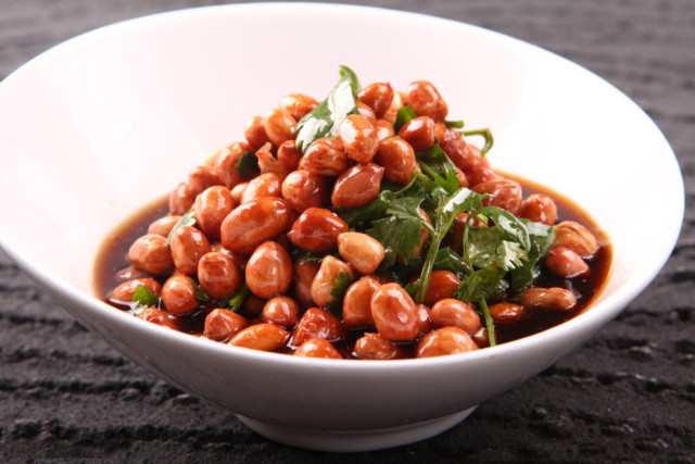 将花生米浸泡于食醋中,一日后食用。