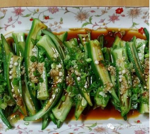 3.将作法2的淋酱淋在作法1的秋葵上即可。!