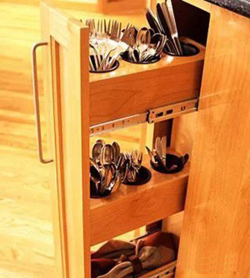 按照自家厨房边角空间做这种抽拉式的收纳架真是太实用啦!再也不用担心台面上东西排成一队队啦!