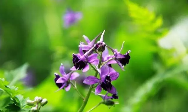 大葱花 多年生草本。茎直立而高。叶互生,心脏形。花呈总状花序顶生单瓣或生瓣,有紫、粉、红、白等色。花期6月至8月。蒴果,种子扁圆,肾脏形。原产中国四川,现在中国分布很广,华东、华中、华北均有。