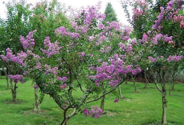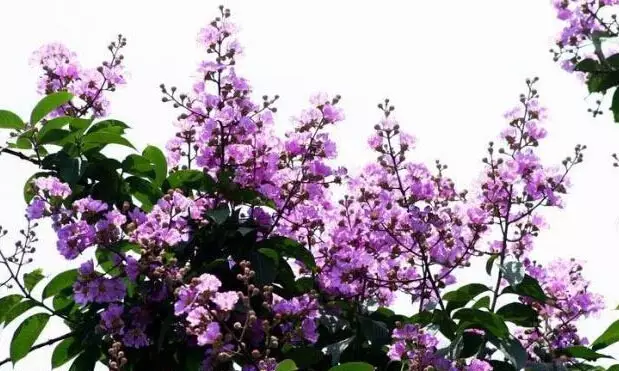 圆锥花序着生于当年生枝端,花呈白、堇、红、紫等色,径约2.5~75px。花萼半球形,绿色,顶端6浅裂,花瓣6,近圆形,边缘皱缩状,基部具长爪。雄蕊多数,生于萼筒基部。子房上位。蒴果近球形,6瓣裂,径约30px,基部具宿存花萼;种子有翅。