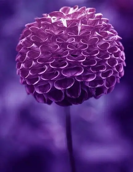 紫色绒球大丽花 "Mary's Jomanda":菊科大丽花属,原产墨西哥、危地马拉、哥伦比亚高原地带,花品种已超过3万个,是世界上花卉品种最多的物种之一。墨西哥人把它视为大方、富丽的象征,因此将它尊为国花。