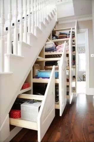 楼梯下方的空间收纳,俨然就是衣帽间即视感,太有范了有木有!
