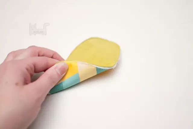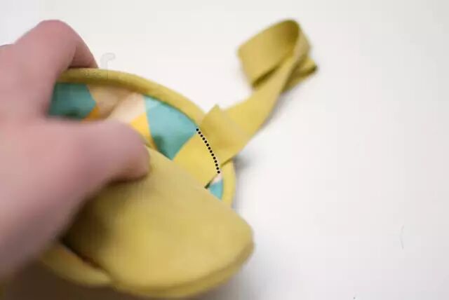 鞋面部分,铺棉+黄色表布+里布车缝在一起。