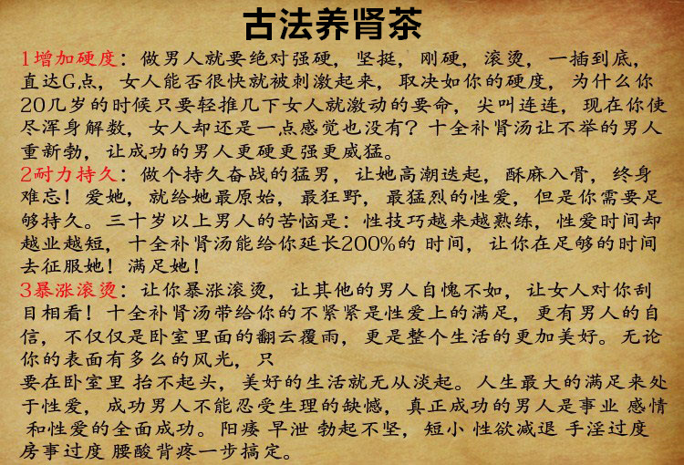 男人要坚挺,才能擒住女人心,娱乐圈补肾佳品悄悄泄露...古法秘制养肾茶,喝出威猛真性情。风靡娱乐圈的补肾瑰宝...