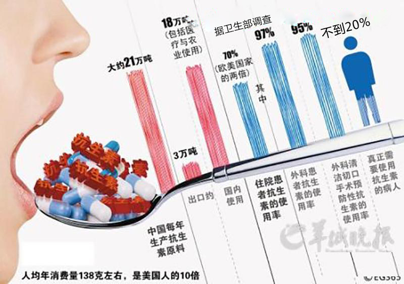 5、中国年产20万吨抗生素,“人一半,动物一半”
