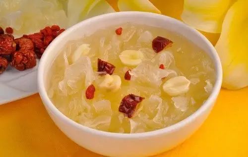 推荐食谱:先将银耳放入砂锅中熬至浓稠酥软,再将西红柿洗净去皮捣烂,放入银耳羹中煮开,加冰糖适量调味。