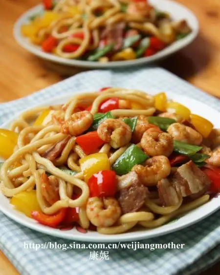 鲜汤,再将面条倒入锅内拌,炒至炒干水份即可。