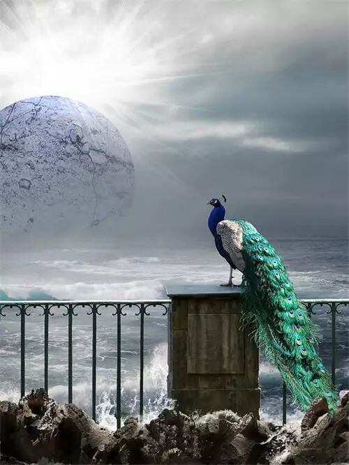 在东方的传说中,孔雀是由百鸟之长凤凰得到交合之气后育生的,与大鹏为同母所生,被如来佛祖封为大明王菩萨。